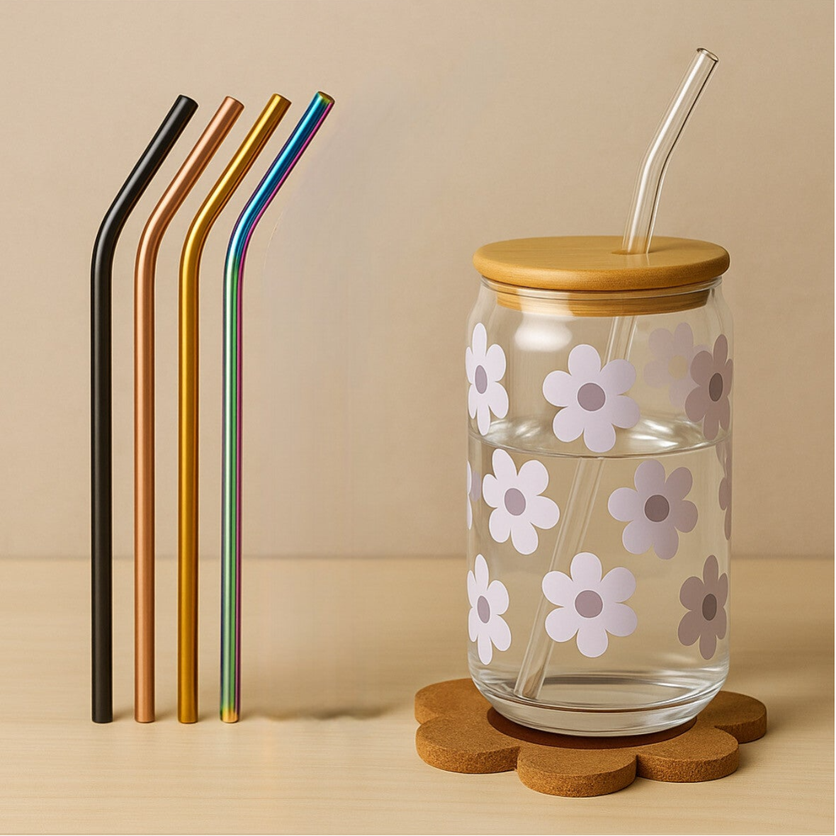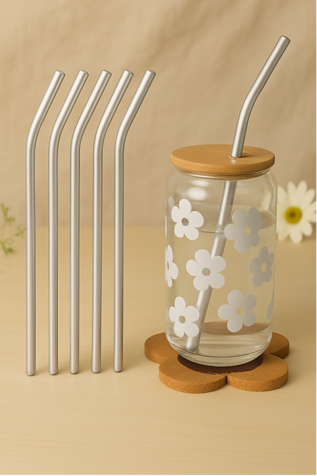 🌸 Associez lès à un dessous de verre en liège en forme de fleur, assorti à la collection de votre choix 🌼